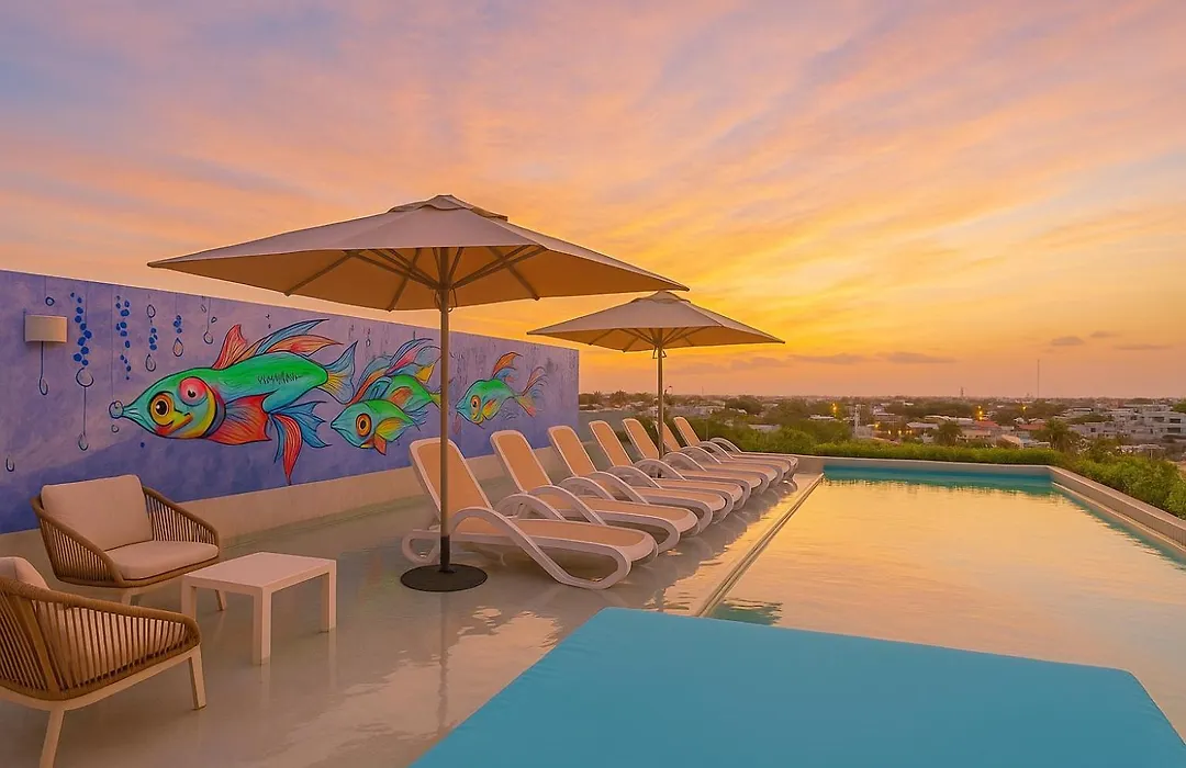 El apartamento se encuentra en el barrio Centro, a poco más de 5 minutos en coche de la Quinta Avenida y a unos minutos a pie del Museo Frida Kahlo. El A-Nah Apartments, Rooftop Pool, Walking Distance To 5Th Avenue está situado aproximadamente a tan solo 1,1 km del Sol Jaguar. El Parque Los Fundadores está situado a unos 20 minutos a pie del alojamiento.